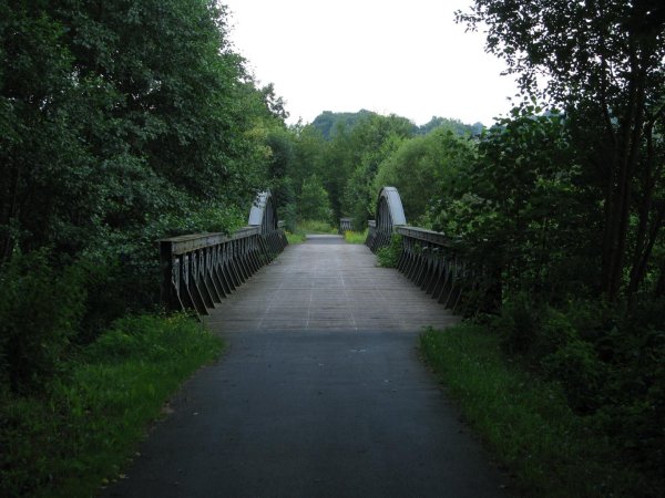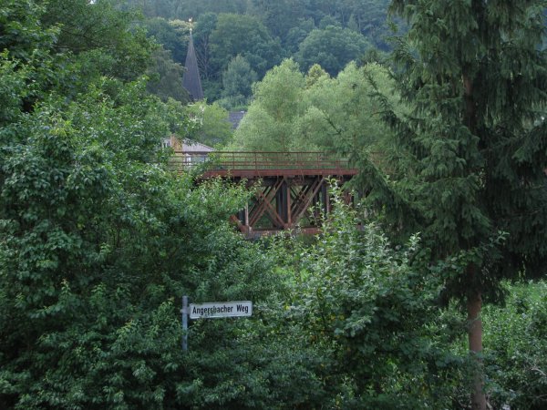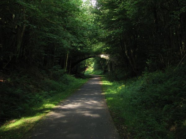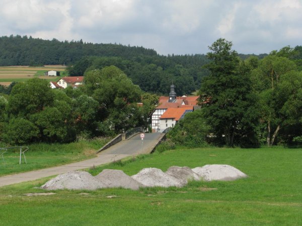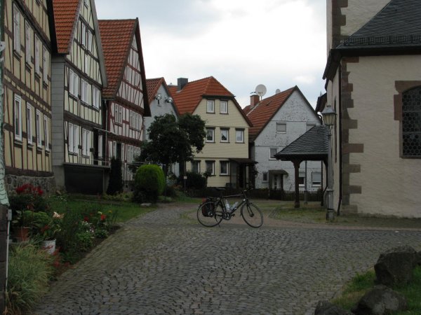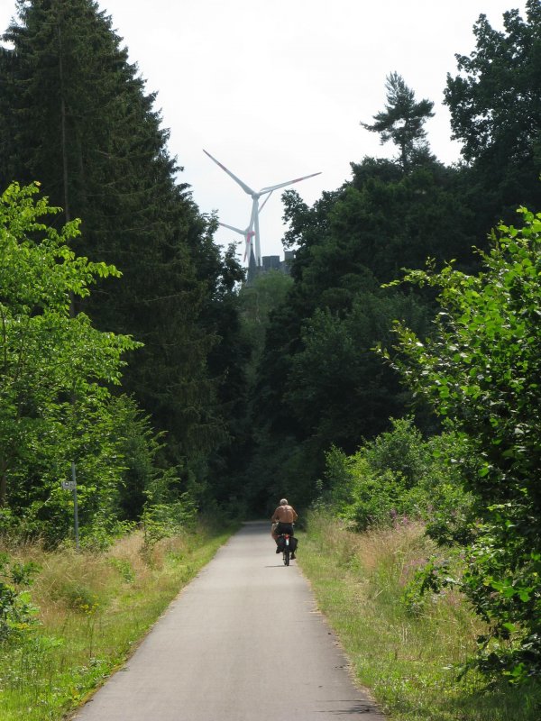 lauterbach hat eine hübsche fachwerk-altstadt, aber nichts mit gutem cafe, zumindest habe ich nichts gefunden. ab oberhalb lauterbach wirklich alte bahntrasse in hügeligem gelände mit einschnitten und so. wäre auch hier schön, wenn es um lauterbach herum auch schon auf der trasse ginge. herbstein hat eine schöne anlage mit stadtmauer, aber los ist da oben auch nichts. ich hatte sowieso vor, bei hartmannshain und dem höchsten punkt der strecke zu übernachten, was ich dann im “deutschen haus” in bermuthshain tat. ich habe noch nicht herausgefunden, ob dieser name aus der nazi-vergangenheit der gegend herrührt. sehr ruhig da oben, wenig fluglärm, nachts auch kein autoverkehr mehr, das dorf aber ziemlich morbide. leerstand, heruntergekommene bauernhöfe und auch neubauten. das essen im deutschen haus preislich halt provinz, apfelwein nicht aus dem vogelsberg, sondern Rapps. na gut, wetterau, rand vom vogelsberg, aber eben großkelterei.