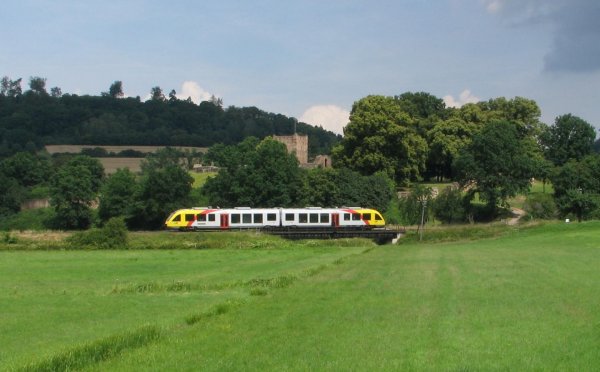 entgegen ersten überlegungen habe ich doch eine zweitagestour daraus gemacht. am dienstag mit dem zug nach fulda gefahren, von dort den fuldaradweg bis schlitz. landschaftlich ganz passabel. der radweg ab schlitz nennt sich vulkanradweg; er führt auf der trasse der ehemaligen vogelsbergbahn von lauterbach bis stockheim bzw. in die andere richtung von salzschlirf bis schlitz auf der trasse der ehemaligen bahnstrecke nach niederjossa im fuldatal. es wäre ja zu schön gewesen, wenn der radweg in salzschlirf über die fachwerkbrücken geführt worden wäre. der bahnhof in salzschlirf mit dem alten bahnsteigvordach und dem ehemaligen stellwerksturm lohnt einen blick. kurz vor angersbach schöner blick über die aue und eisenbahn (heutige vogelsbergbahn) auf die wartenbergruine.