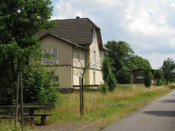 in altenstadt im ehemaligen lagerschuppen am bahnhof ist ein bistro neu eingerichtet. gedeckter apfelkuchen: fabrikkuchen mit viel zuckerguss, zu süß und geschmacklos. in höchst ist der vulkanradweg wirklich zuende, der bahnradweg führt weiter nach hanau und hat ein paar hügel. ich hätte mir früher sonnencreme ins gesicht tun sollen, ab ortenberg wurde es zunehmend sonniger und abends hatte ich einen leichten sonnenbrand. beim wartbaum hinter windecken lohnt es sich, eine pause zu machen und die aussicht richtung hanau und spessart zu genießen, da der weitere weg landschaftlich eher langweilig ist; halt ein weg, um nach hanau zum bahnhof zu kommen.