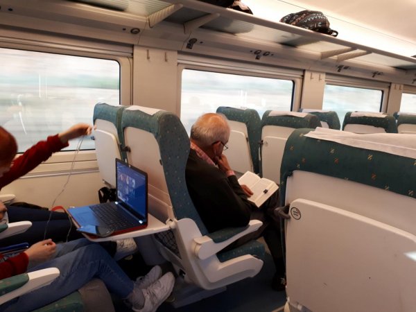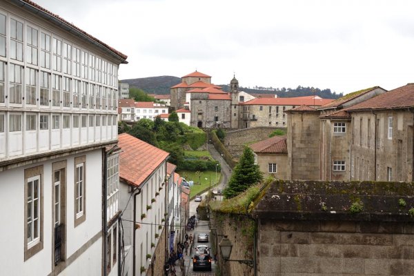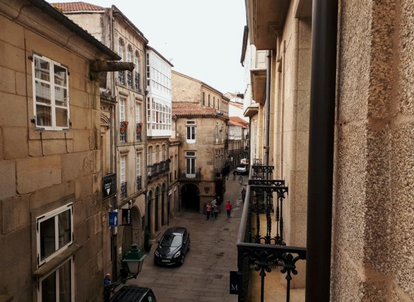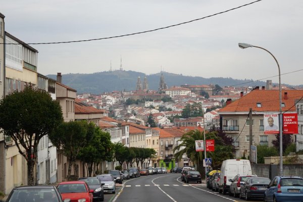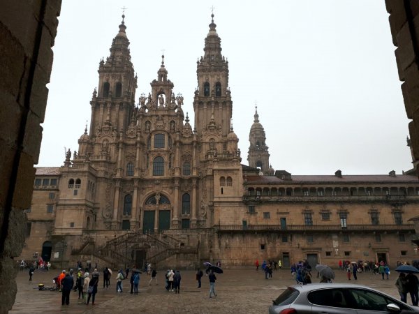 die anreise war mal wieder etwas holprig; wg. drohnenalarm oder schlechtem wetter oder sonstwas startete der flug nach madrid mit knapp zwei stunden verspätung, der anschlussflug dort war natürlich weg. der nächste schon ausgebucht und der übernächste landete schlag mitternacht im nebel in santiago. also sieben stunden verspätung. iberia zickt natürlich mit entschädigung. die billigfluglinie aus dem hunsrück ist aber auch nicht besser; Klaus und Rainer landeten mit vier stunden verspätung kurz vor mir. wir trafen uns am gepäckband und konnten zusammen mit dem bus, zu der zeit fährt da noch einer, in die stadt zum hotel fahren.