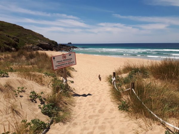 als streckenwanderung, wenn man im übernachtungsort noch was vom abend haben will, sind einige etappen etwas zu lang bzw. nur mit sportlicher kondition zu machen. die originaltour macht das ganze in nur acht etappen, wobei das wohl eher auf spanier zugeschnitten ist, die je zwei etappen am wochenende laufen und den abend nur zum abendessen brauchen. es gibt viele schöne ausblicke auf die felsenküste und die brandung, aber auch abwechselung, wo die fünfte und sechste etappe landeinwärts verlaufen. die ärmlichkeit der gegend mit landflucht ist immer zu sehen, von paar touristenorten mit fischereihäfen wie malpica, laxe, muxía vielleicht abgesehen.