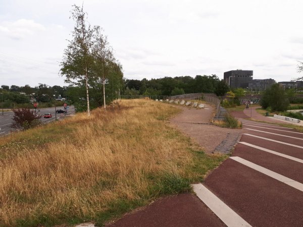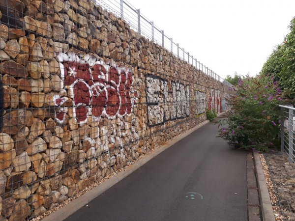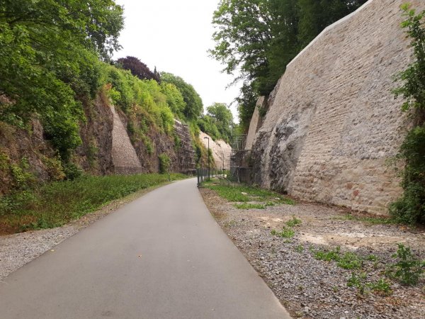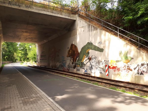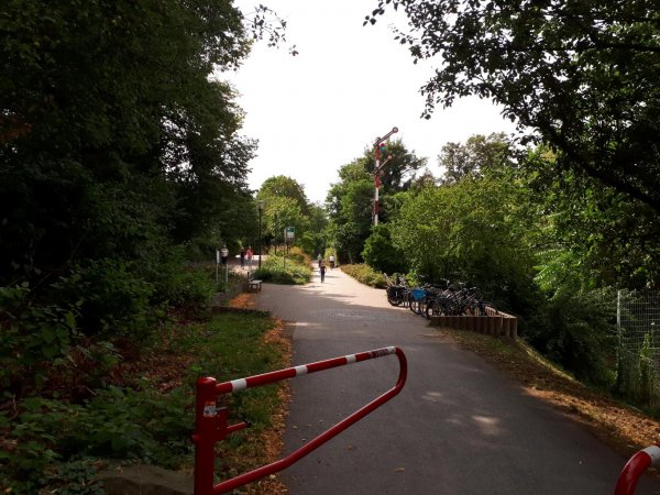 ein bisschen durch essen zum bisherigen ende des RS1. nennt sich radschnellweg, ist auch breit ausgebaut, aber nicht wirklich gut zu fahren. alle ritt lang holprige pflasterschwellen, zwischendurch sogar ein abschnitt mit wassergebundener decke mit deutlichen spurrillen. also als weg zur arbeit nicht wirklich gut. zudem ist es kein reiner radweg, sondern wie die meisten bahntrassenwege ein kombinierter rad- und fußweg. an feiertagen mit schönem wetter ist da mit schnell nix. wenigstens stehen noch ein paar lichtsignale, an den originalstellen. ich bin ihn bis zum abzweig des grugawegs gefahren. dieser ist am anfang mit wassergebundener decke auch holprig, aber landschaftlich ganz hübsch, wenn auch mal vor lauter bäumen nicht so viel zu sehen ist. ab kurz hinter grugapark/messe zur ruhr runter neuer asfalt in gutem zustand und ohne pflasterschwellen. geht doch!