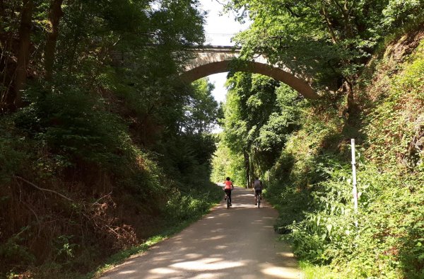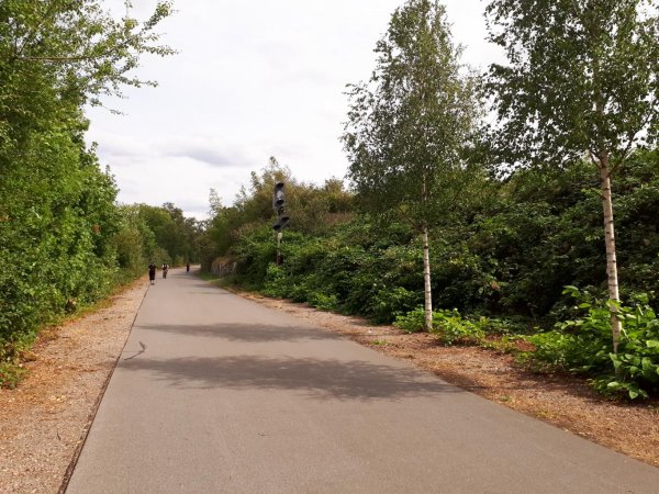 ehemalige bahntrassen gibts jede menge, viele davon reine güterbahnen und deshalb schon lange nicht mehr benutzt, zugewachsen oder abgerissen und überbaut. manche als radweg aus dem dornröschenschlaf erweckt und zur route der industriekultur ausgebaut wie die erzbahn. die meisten der trassen, die ich gefahren bin, sind gut asfaltiert und schön zu fahren und haben deshalb einen hohen freizeitwert. da sie aufgrund des jahrzehntelangen brachliegens seitlich einen hohen sukzessionsbewuchs haben, fährt man über größere abschnitte zwischen büschen und bäumen und sieht von der landschaft kaum was. an einem schönen märztag sieht das bestimmt schon wieder anders aus. als radverkehrsverbindungen taugen viele nicht, da die güter- und industriebahnen naheliegenderweise nicht entlang der (heutigen) personenverkehrsbedürfnisse gebaut wurden. von der ursprünglichen eisenbahninfrastruktur ist kaum noch was zu sehen, selbst keine kilometersteine mehr. ab und zu mal ein dahin drapiertes signal (am falschen standort oder mit fantasie-signalbild). klar, wurde seinerzeit als erstes abgebaut.