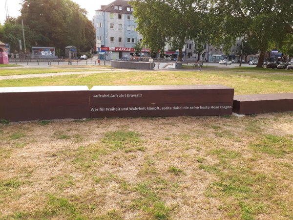 die 12 km nach bochum ziehen sich etwas. minischmale bürgersteigradwege mit benutzungspflicht, vielleicht wegen der straßenbahn auf der fahrbahn. hab sie nicht benutzt. die route kommt genau am bermuda3eck raus, größte kneipendichte (nicht anzahl) deutschlands, angeblich. was für touris und junggesellenabschiede, hab ich mir nicht angetan. sonst scheint bochum kulinarisch nicht viel zu bieten, trotz uni-stadt kein bio-restaurant gefunden und auch sonst nix, was mich angemacht hätte. bin dann bei einem türkischen veggihaus gelandet, wo ich einen veggihaus-teller verputzt habe, humus, lamacuhn, weißkohl, … ganz gut und hat satt gemacht. das vierbettzimmer in der JH hab ich für die erste nacht alleine.