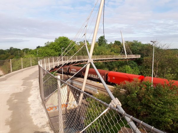 von vohwinkel auf die nordbahntrasse und kohlenbahn bis hattingen. so belanglos niederbergbahn und korkenzieher sind, so imposant ist die nordbahntrasse, auch die kohlenbahn landschaftlich ganz schön, geht aber in hattingen leider nicht weiter. nach einer eisschokolade in der recht hübschen hattinger altstadt nur kurz zur henrichshütte, weil es für einen besuch schon zu spät war; würde bestimmt einen eigenen besuch, zusammen mit dahlhausen lohnen.
