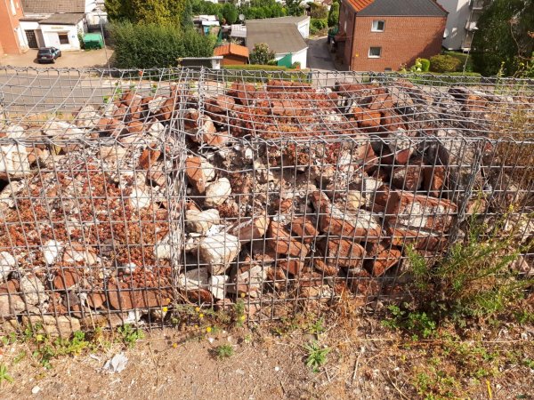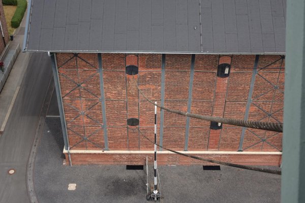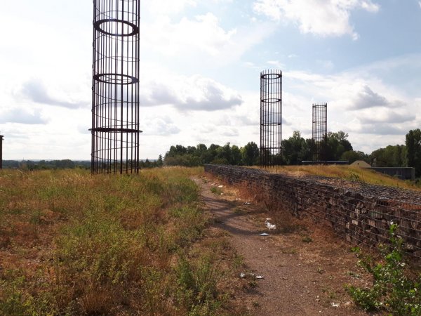 die drahtkorbmauern aus ziegelsteinen der ehemaligen zechengebäude