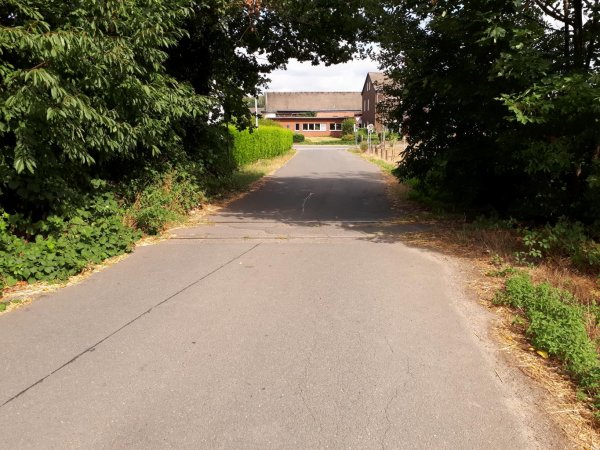 die härte ist die route ab dem ende der bahntrasse: linksseitiger, daher zweirichtungs-geh- und radweg (Vz 240), geschätzte breite 1,20 m, davon 50 cm hineinragender bewuchs. dergleichen habe ich auf der tour noch sehr oft gesehen und selbstverständlich nicht benutzt. ich bin aber auch kein einziges mal angehupt worden, was vielleicht auch damit zusammenhängt, dass noch ferien waren und ich nicht zur hauptverkehrszeit unterwegs war. es gibt noch viel zu tun in NRW in sachen radverkehr.