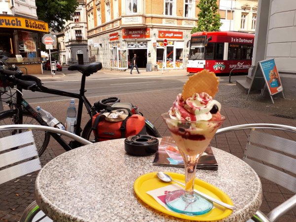 bis dortmund-dorstfeld gefahren, einen amarenabecher konsumiert; das eis war künstlich süß, die amarenakirschen haben nach chemischem lösemittel geschmeckt.