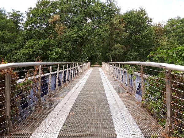 die erste größere bahntrasse, die niederbergbahn, steigt kontinuierlich bis velbert an, immerhin 190 höhenmeter auf 13 km, aber trotzdem entspannt zu fahren. leider sieht man kaum was, da die strecke zugewachsen oder im einschnitt geführt ist. auch der abstecher wülfrath war überflüssig, vom wülfrather see sieht man nix. hätte ich aber auch bei genauem hingucken auf die karte sehen können.