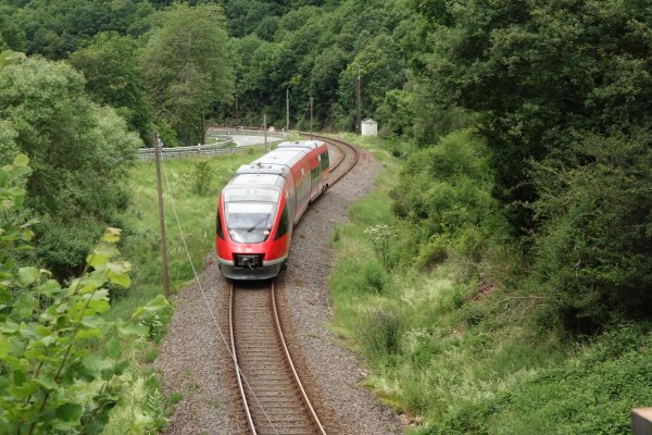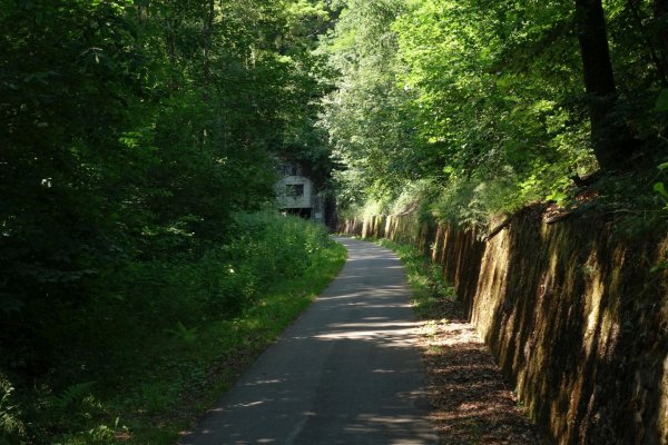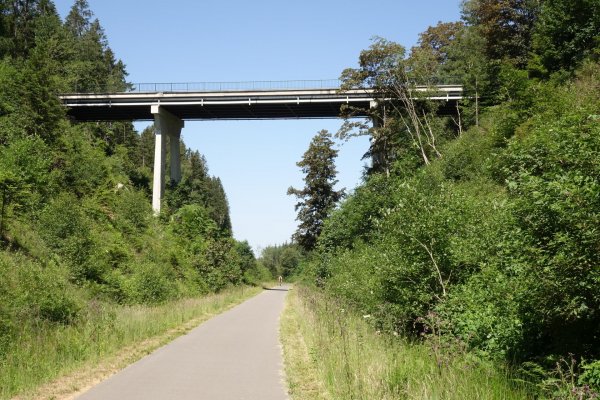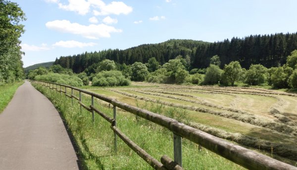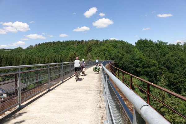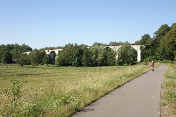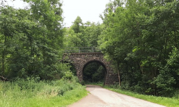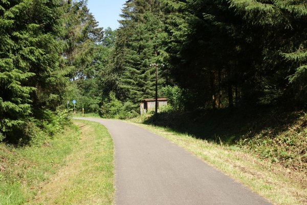 die sauer landschaftlich ganz nett, man sieht meist nicht viel davon, die ufer etwas zugewachsen, streckenweise enges tal. ab metzdorf gehts auf die trasse der ehemaligen nims-sauertalbahn, im ersten teil durch einen schönen buchenwaldtunnel. im sauertal wurde die strecke vor 50 jahren abgebaut, entsprechend ist nicht mehr viel erkennbar. erst von minden bis irreler mühle, der prümtalradweg, fährt man wieder meist auf der asfaltierten trasse, leider aber unter umfahrung der brücken und viadukte. in irrel ist nichts mehr.