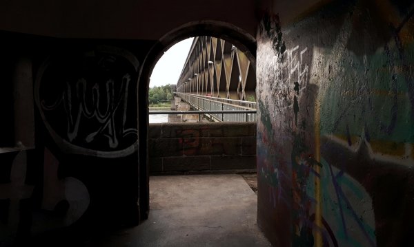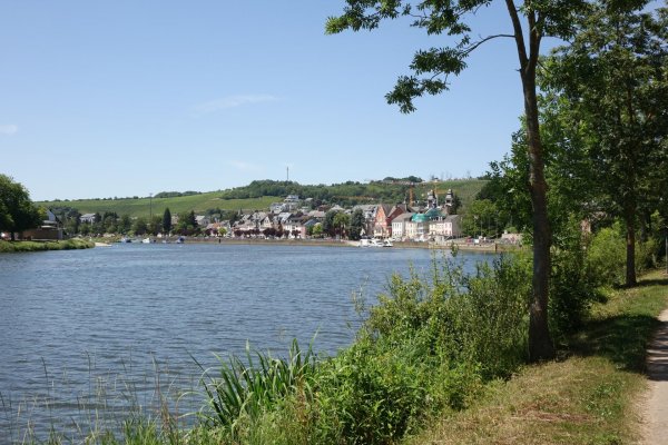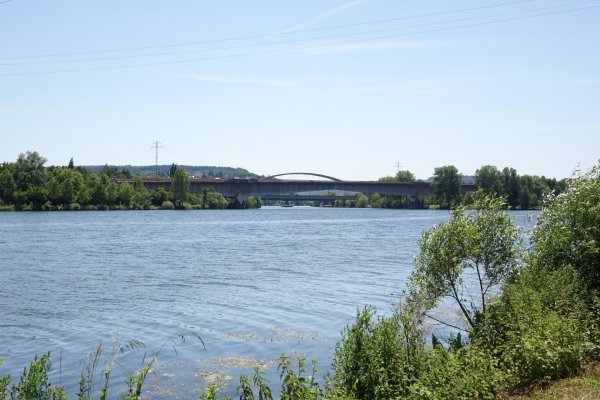 in konz trinkwasservorräte aufgefüllt und zur moseleisenbahnbrücke. das ehemalige zweite gleis, stromabwärts, ist jetzt rad- und fußweg. auf dem leinpfad nach wasserbilligerbrück, von der eisenbahnbrücke bis zur sauerbrücke sinds nur 5,5 km.