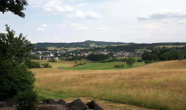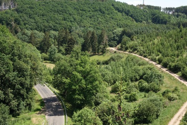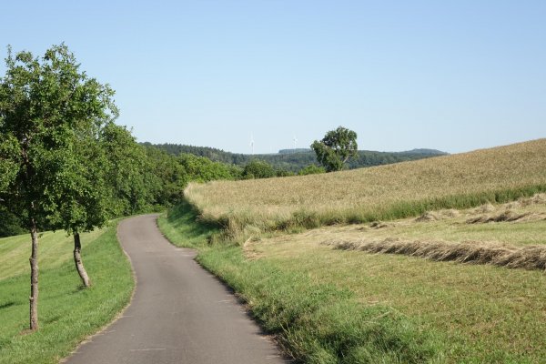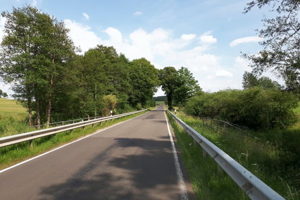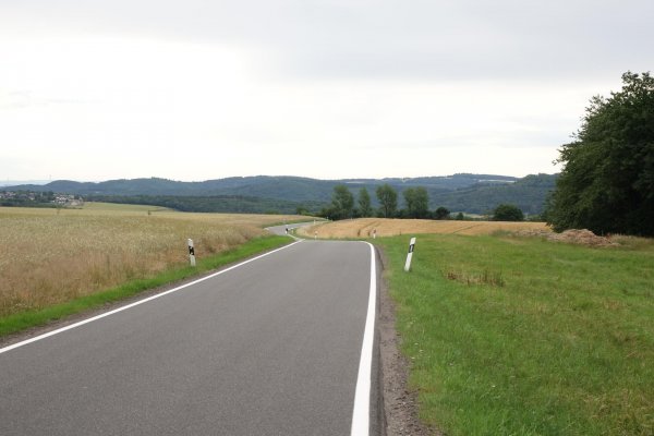 ich hätte statt meinem brouter-track vielleicht besser der ausschilderung nach gerolstein folgen sollen, das geht zwar dann auf wirtschaftswegen durchs wiesbachtal nach wiesbach, hätte aber weniger heftige steigung gehabt wie die nach feusdorf auf der straße. auf der ganzen strecke bis kelberg sind viele motorradbanden unterwegs, großraum köln, belgier, holländer. ansonsten aber nicht viel verkehr auf dieser eher schmalen landstraße mit schönen ausblicken über die eifel; mal wieder was anderes. auf diesen straßen ist man als reiseradler wieder fast allein, ab und zu mal ein rennrad.