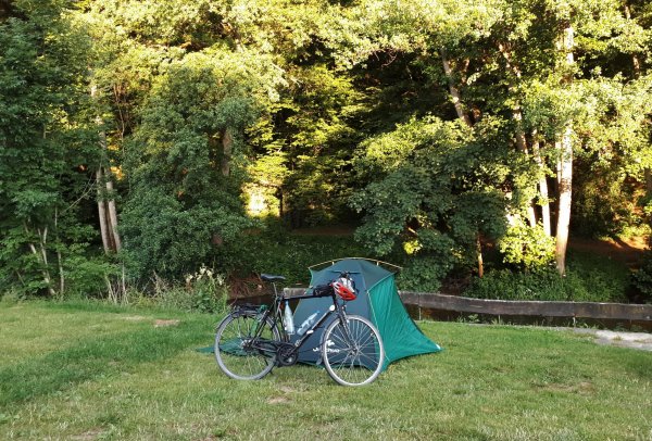 halbfünf am südeifel-camping in irrel, es gibt sieben plätze für nur-zelter, direkt an der prüm, der rest dauerbarackencamper oder womos. zum ersten mal das zelt aufgebaut, die erste radtour mit zelt. der sanitärbereich ist recht neu und warmwasser inbegriffen. ich hätte sogar elektroanschluss haben können, aber das handy hab ich per schnelllader im sanitärbereich abends und morgens etwas aufgeladen, hat gereicht. abendessen im ort bei einem hotel-restaurant draußen, sonst scheint es nix zu geben. mit ziegenkäse gefüllte gnocchi + tomatensauße + spinat und eine große weinschorle, bisschen luxemburger preise für so ein fast-fertig-schnellgericht, aber hat brauchbar geschmeckt und mich genügend satt gemacht.