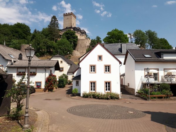 weiter auf der straße hoch richtung kelberg. schöne route über die eifelhöhen, wenn nur die vielen motorräder nicht wären. es wurde zunehmend wolkiger. bin dann hinter nohn nicht der geplanten route zur nürburg gefolgt, sondern weiter nach kelberg gefahren in der hoffnung, dort eine passende unterkunft zu finden, vielleicht die von vor zehn jahren. tatsächlich kam ich auf der straße von nohn genau an dem haus vorbei. und hab die ferienwohnung im dachgeschoss bekommen. mittlerweile bedeckt und ein paar regentropfen. zum abendessen wieder in die gleiche pizzeria, pizza il gabbiano und ein chianti. die heutige etappe hat sich fast ausschließlich zwischen 400 und 600 m abgespielt, es kamen aber 1500 hm zusammen. gestern zu 2/3 zwischen 350 und 530 m.