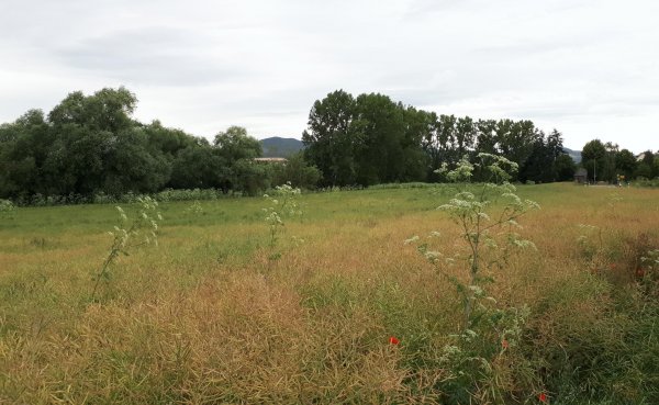 ab bf mayen ost nochmal 1,8 km auf der trasse koblenz-mayen, dann abwärts in die weitere ebene des thürer bachs bis plaidt. leider bedeckt und ab und zu paar tropfen, kein fotowetter, aber die route bis kruft ist ganz schön mit den laacher bergen und dem rheintal im hintergrund. die offizielle ortsdurchfahrt in plaidt ist vollkommen idotisch zickzack, es gibt auch eine mehr direkte verbindung über die ortstraßen. den rest bis weißenturm fand ich landschaftlich nicht reizvoll, muss man halt durch.