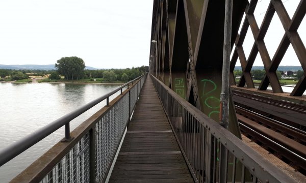 weil erst ein uhr war hab ich mich entschieden, die etappe nach neuwied und über die urmitzer brücke auch noch zu machen. 21 jahre in der gegend gelebt und noch nie dort gewesen. die radroute von neuwied nach bendorf am rhein entlang ist als verkehrsweg ok, lohnt nicht für eine radreise. der fußgängersteg der eisenbahnbrücke ist sehr schmal, zwei fahrräder kommen nur stehend aneinander vorbei, mit meinen großen packtaschen wars nochmal schwieriger. aber die brücke kann man mal gesehen haben. der weitere leinpfad am rhein an kaltenengers, st. sebastian und kesselheim vorbei lohnt auch nicht wirklich, recht schmal und holprig zudem. zum ersten mal in neuendorf gewesen, mal eine andere perspektive aufs deutsche eck und den ehrenbreitstein. die koblenzer altstadt war mir viel zu voll, weshalb ich für meinen abschlussnussbecher zum brustolon am bahnhof gefahren bin. der musste sein, auch wenn ich dadurch den re nach mainz nicht mehr bekommen hab und stattdessen mit der vias-rheingaulinie, die ich nun auch in- und auswendig kenne, über wiesbaden und mainz eine stunde später zuhause war.