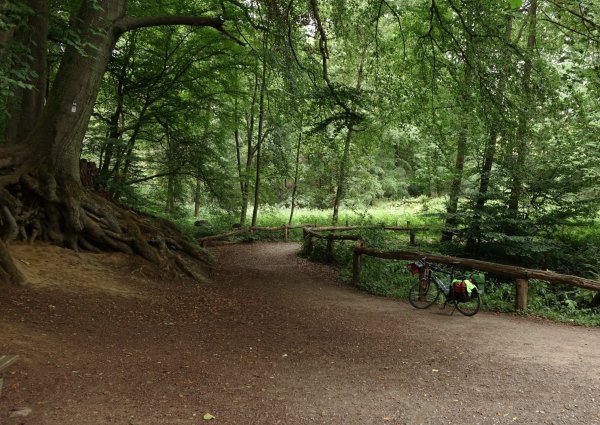 es wurde doch halbneun, bis ich gestartet bin. recht frisch, bedeckt mit bisschen sonne. durch rüttenscheid zum aussichtspunkt korte-klippe. auch hier wieder nicht nur ein pfad, sondern breiter schotterweg von der straße aus. kein gutes wetter für schöne aussicht. weiter nach heisingen und zur ruhr runter und ein stück von gestern nochmal gefahren. es wäre besser gewesen, nach steele und an der ruhr entlang nach dahlhausen zu fahren wie letztes jahr. stattdessen bin ich dem wegweiser nach dahlhausen gefolgt, also über die brücke und wieder ein gutes stück zurück und hab über überruhr den bogen abgeschnitten. ich hätte aber schon früher wieder zur ruhr runter fahren können, nicht aufgepasst und nicht richtig geguckt.