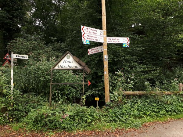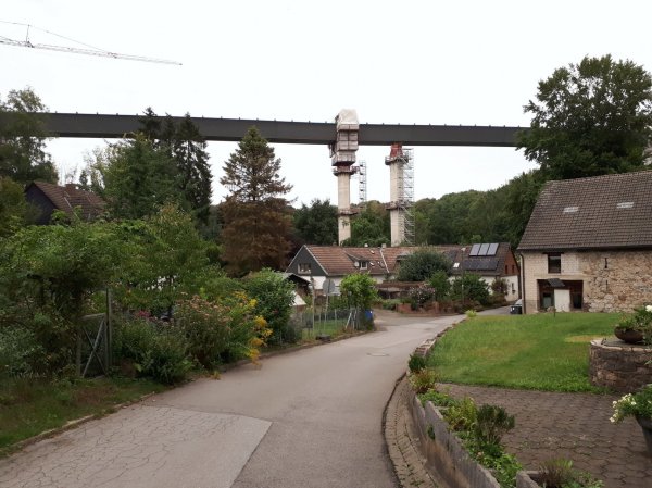 bei bedecktem himmel ins angertal gestartet, beim fahren wurds den berg hoch schnell warm. das angertal ist in der tat hübsch, am anfang steht ein schild „fahrräder schieben“, aber auf dem ganzen weg hab ich nur 3 fußgänger und 6 jogger gesehen; bei besserem wetter und am wochenende dürfte das anders aussehen. auf der angerbachtalbahn fuhr kein kalkzug. bei der hofermühle, oberhalb des klärwerks und der A44-baustelle muss man 400 m eine relativ stark befahrene, schmale landstraße runter und hoch; das ist die verbindung zwischen den beiden derzeitigen enden der A44. dann gehts weiter in den oberen teil, wo sich das tal weitet. oben, oberhalb von flandersbach pfiff der wind recht frisch.