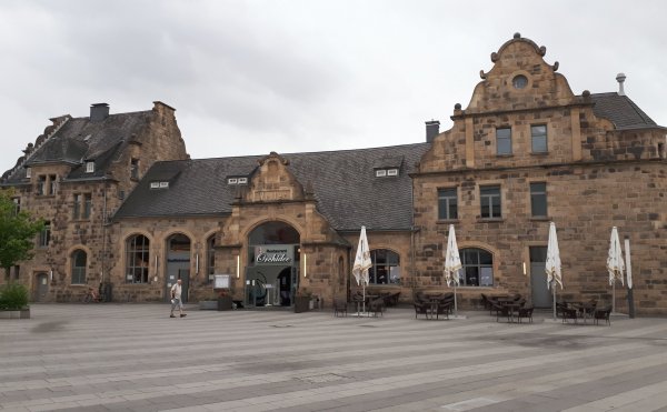 nach hattingen rein, wie letztes jahr schon festgestellt etwas herunter gekommen, die bahnhofstraße hat auch schon bessere zeiten gesehen. in einer selbstbedienungsbäckerei neben dem eiscafe vom letzten jahr, mehr gibts wohl nicht da, ein heidelbeerschmandkuchen und ein kirschstreusel und cappu draußen verspeist. besuch henrichshütte gestrichen wg. trübem wetter und überhaupt; hatte keine richtige lust, in völklingen gibts mehr zu sehen. von dieser sorte museumsruinen gibts im ruhrgebiet halt viele. stattdessen hätte ich mir aber den alten bahnhof hattingen mal aus der nähe ansehen sollen.