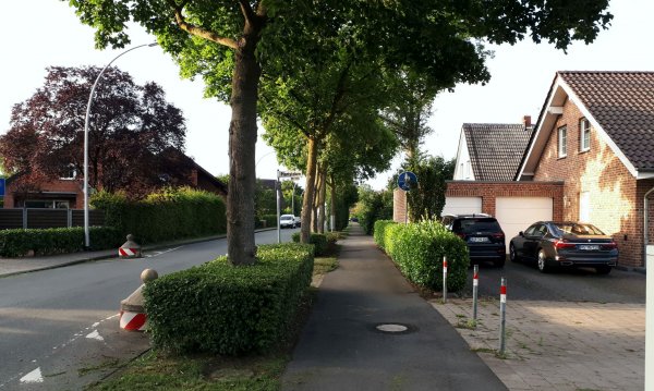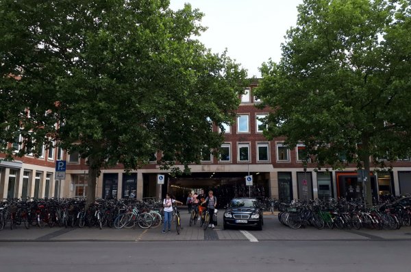 aber außerhalb der altstadt gibt es vielzuviele benutzungspflichtige gehradwege, manche zwar genügend breit, viele aber zu schmal und viele noch aus alten zeiten, um die radfahrer von der straße wegzuhalten, unter inkaufnahme der konflikte mit fußgängern, besonders an kreuzungen (ein bisschen wie in ljubljana, nur sind in münster die radstreifen deutlich breiter). sehr oft solche schmalen benutzungspflichtigen gehradwege an wenig befahrenen straßen, wo sie nun völliger blödsinn sind. an einer solchen stelle fuhr ein suv neben mir und meinte durch das runtergelassene beifahrerfenster, das es doch den radweg gäbe. angehupt hat mich aber keiner; überhaupt wenig hupen.