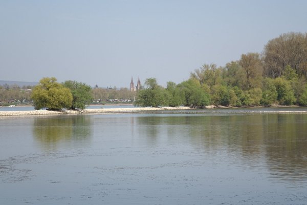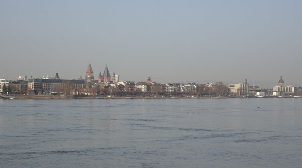 zum abschluss zum rhein gefahren und den ausgeschilderten weg hinterm rheindeich entlang nach mainz. ich hätte vorher mal ins radreise-wiki schauen sollen, wonach man sehr wohl direkt am rhein entlang fahren kann statt dem absolut langweiligen (aber zum strecke machen geeigneten) weg hinterm deich zu folgen.