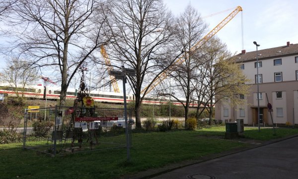 nach drei kugeln eis beim cafe amadeo an haraeus vorbei und der kinzig entlang zum “pioneer park”, konversionsfläche der ehemaligen eisenbahn-pionierkaserne, dann nach lamboy. die lamboystraße gekreuzt und durchs gewerbegebiet, eine autoschrauberbude und autohändler am anderen.