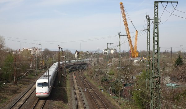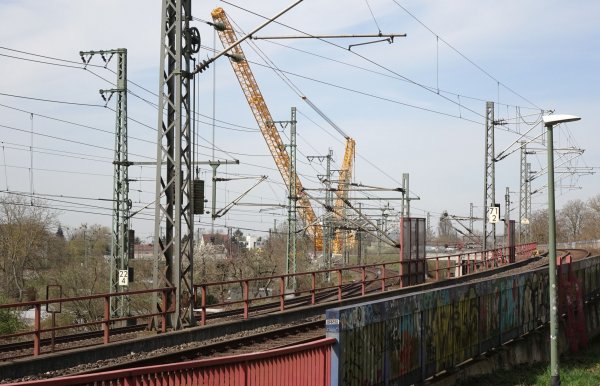 9. april – von obersthausen durch hausen und auf schönem waldweg nach dietesheim, über die staustufe auf die rechte mainseite und nach hanau, brückenbaustelle mit riesigem kran gugge.