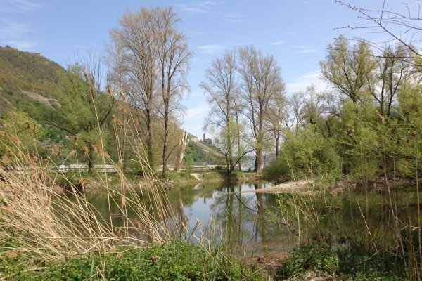 28. april – bei sonnig-diesigem-warmem wetter von mainz zum rhein bei budenheim und, wie vor zwei wochen überlegt, den uferweg nach bingen gefahren.
