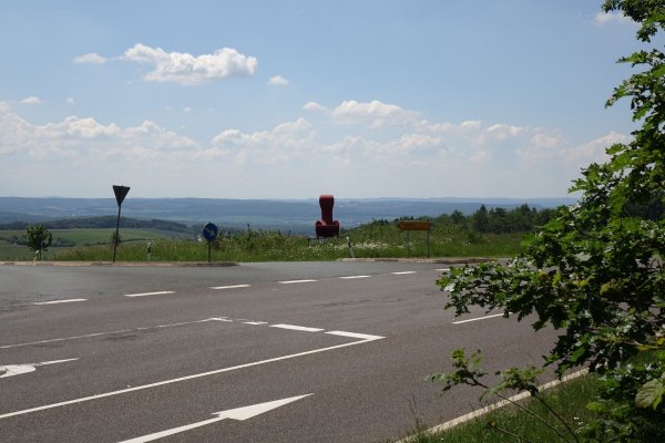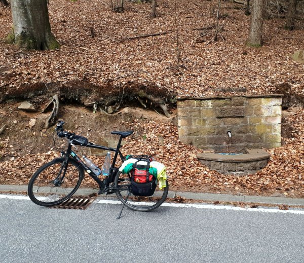 in st. alban kleine esspause und ab würzweiler wg. möglichen eichenprozessionsspinnerbefalls und weil ich die radroute durch den wald von vor vier jahren in schlechter erinnerung hatte, auf der stillgelegten und gesperrten landstraße bis zum ende bei der jetzigen landstraße gefahren. dort entschieden, nicht bis marienthal und zum donnersberg zu fahren, sondern da hoch nach ruppertsecken. auch da gehts 2 km steil hoch, aber da es keine durchgangsstraße ist, ist kaum verkehr. weite aussicht dort oben bei 480 m. die route geht weiter über den höhenzug und fällt dann nach kibo-haide kräftig ab. nach orbis und der selzquelle kurzen besuch abgestattet und durchs selztal nach alzey. die letzten vier km dorthin muss man durch; schön sind sie nicht.