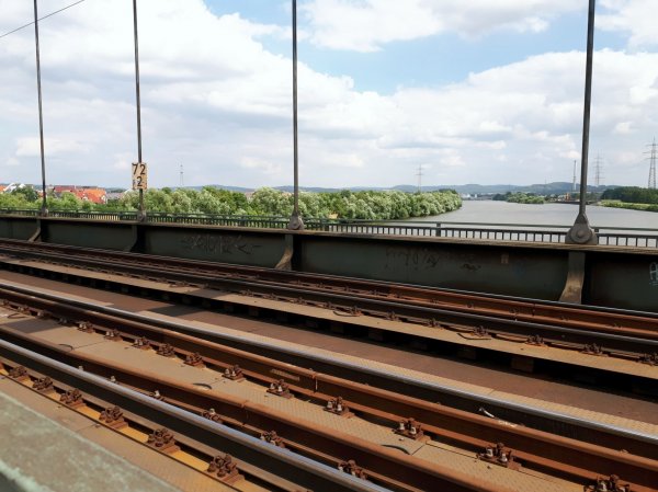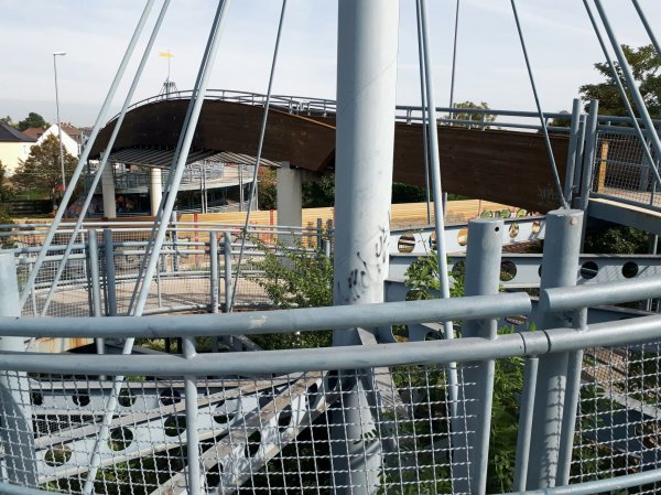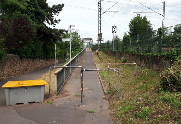 die stockstädter eisenbahnbrücke nach gefühlt jahrzenten (es waren zwei jahre) endlich wieder für fußgänger*innen und radfahrer*innen passierbar.