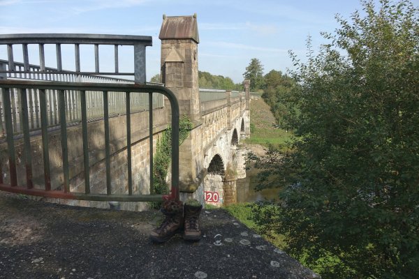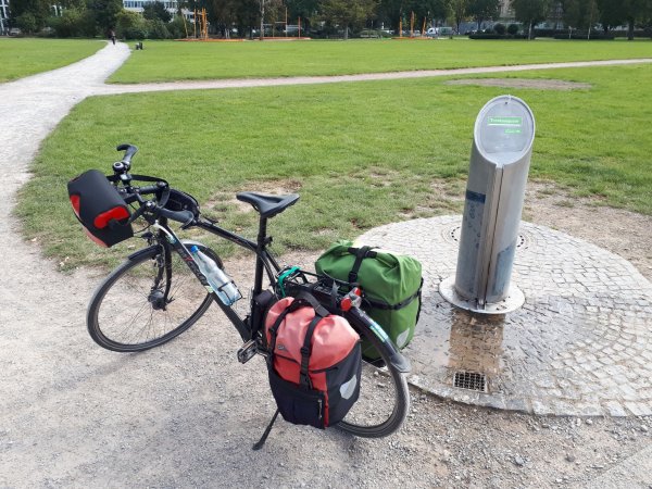 es gab zwar auch in der gegend oder etwas südlich das unwetter im juli, aber im september bisher keinen regen und entsprechend staubig waren die kanalradwege; das rad und die packtaschen ziemlich eingesaut.