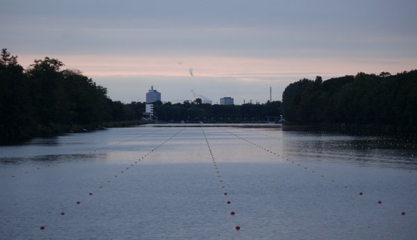 auf der anderen seite zurück und am dortmund-ems-kanal und datteln-hamm-kanal entlang nach waltrop. dort nochmal kurze pause zum nachschminken und weiter zum dek und diesen entlang bis zum nördlichen dortmunder hafen. der weg entlang des kanals ist sehr regelmäßig auf der westseite mit noch jungen bäumen bepflanzt, so dass man weitgehend im schatten fährt.