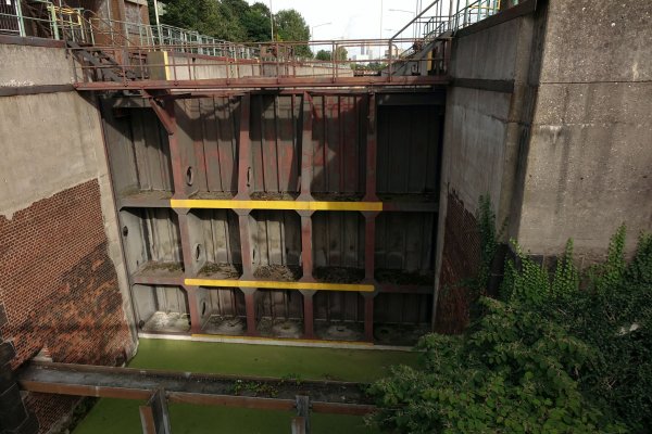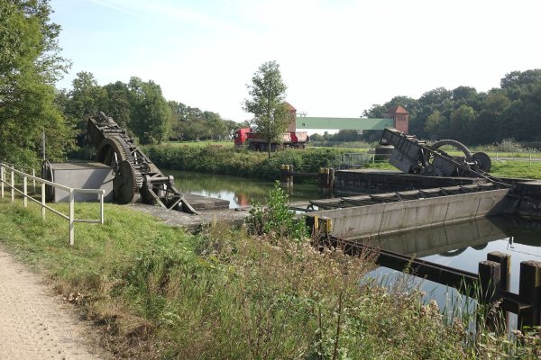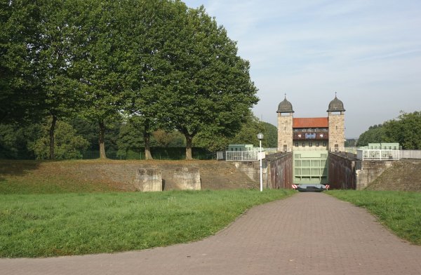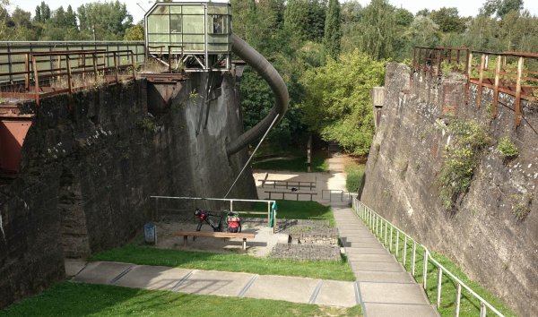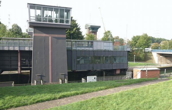 den neuen emscher-durchlass in henrichenburg hätte ich mir gerne aus der nähe angesehen, aber kein näherkommen zur baustelle möglich; radweg am rhk in dem bereich auch gesperrt. bei einer billigbäckerei in henrichenburg etwas proviant gekauft und weiter zum schleusenpark waltrop. die speicherbecken der alten sparschleuse lassen sich nicht gut fotografieren, kein passender aussichtspunkt. die auf der nordseite sind zu parkplätzen umgebaut worden. auch an das neuere schiffshebewerk kommt man nicht ran.