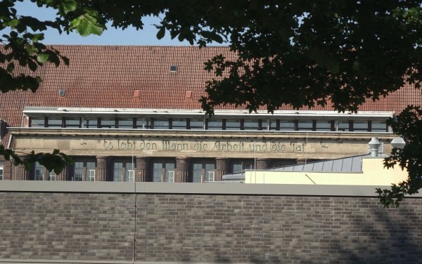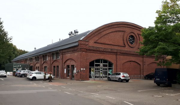 bei bedecktem himmel und neblig-feuchtem wetter erst nochmal zur kreinberg-siedlung und zum eaw, die einfahrt nun gefunden. viele gebäude stehen noch und unter denkmalschutz, aber das ganze ist jetzt ein gewerbegebiet. ich hatte von der gedenkstätte für die dort eingesetzten zwangsarbeiter gelesen; man muss schon suchen, um die zu finden.