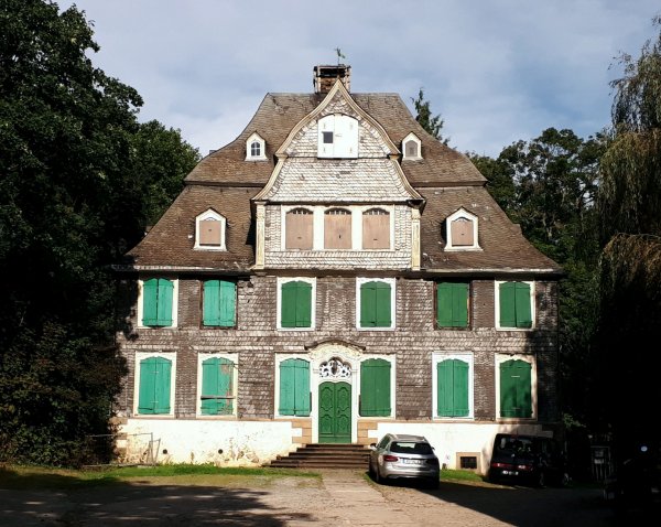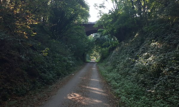 nächstes ziel haus harkorten. auf die trasse der elbschetalbahn, neu angelegter radweg, glatter asfalt schön zu fahren. im schatten noch ziemlich frisch. leider hört der weg anderthalb km vor dem bahnhof albringhausen auf, soll aber wohl irgendwann weiter gebaut werden. obwohl auch ehemaliges zechengebiet ist es landschaftlich schön und eine abwechselung zur ruhr. in albringhausen abgebogen, um zur silscheder kohlenbahn zu kommen. dabei auf der landstraße nach gevelsberg mal wieder nicht aufgepasst und anderthalb km und 70 hm zuviel gefahren. die trasse der kohlenbahn ist als solche ja schon lange nicht mehr existent, entsprechend zugewachsen und nur noch ein nicht sehr breiter weg auf z.t. recht hohem bahndamm. unten in westerbauer auch nix mehr gesehen, dafür hätte ich aber auch etwas mehr forschen müssen. haus harkorten die fensterläden zu.