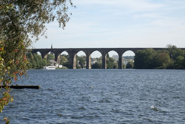 runter zum harkortsee und zum ruhrviadukt, um herdecke herum sehr viel betrieb, der sich aber am westufer des hengsteysees schnell wieder gibt, da der ruhrtalradweg über die ehemalige eisenbahnbrücke am stauwehr geht. köpchenwerk müsste man mal besichtigen. für in herdecke zu übernachten wars mir noch zu früh, deshalb auf einer bank am hengsteysee längere pause gemacht und telefoniert. via buchung.kommerz in der katholischen akademie in schwerte ein zimmer gebucht (die machen das wohl der besseren kostendeckung halber); das im reichshof wäre mir mit 74 oios ohne frühstück zu teuer gewesen.