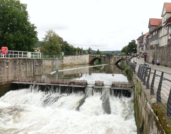 vorsichtig den berg runter gefahren und die weser hoch, ab lauenförde wegen des wetters auf der rechten weserseite. überhaupt bin ich bis münden der ausgeschilderten route gefolgt, die zwar recht flott auf der linken seite zu fahren ist, aber landschaftlich reizlos, da oft zur seeseite keine sicht. insbesondere die 8 km ab karlshafen neben der straße sind nur gut zum strecke machen. die andere weserseite scheint etwas mehr zu bieten zu haben, weshalb auch die rrw-route da her führt. andererseits, bei dem trüben wetter ist das alles nicht der hit. deswegen auch nicht nach karlshafen rein gefahren.